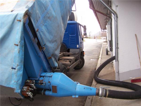 Anfang des Jahres 2007 trat Mann an mich heran, der in das Hackschnitzelgeschäft einsteigen wollte und dafür sollte einen LKW der Marke MAN als Tank-Fahrzeug umgebaut werden. Zunächst mussten die Bordwände erhöht werden, damit genug Lagermöglichkeit für das Hackgut besteht. Die zuvor bei dem Tank-Anhänger aufgetretene Schwierigkeit, das Verhaken des Hackmaterials erwies sich als guten Erfahrungswert beim Umbau des neuen Fahrzeuges. Im November 2007 wurde das 3. Hackgut-Transport- und Einblasfahrzeug fertig gestellt. Damit können nun 13m³ Hackschnitzel in 1 1/4Std. 20m weit und 5 m hoch eingeblasen werden.