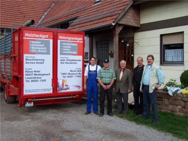Ausschnitt aus der Rhein-Neckar-Zeitung und der Landwirtschaftlichen Zeitung Ende 2004:Den neuen, von Martin Bell und dem Maschinenring konstruierten "Holzhackgut-Tankwagen", stellte der Vorsitzende vom Maschinenring Klaus Helm mit Handwerksmeister Martin Bell (Neckarelz) der Öffentlichkeit vor. Viele Interessierte, darunter die beiden Schornsteinfegermeister Thomas Bräumer und Manfred Deschner und der SPD-Landtagsabgeordnete Gerd Teßmer, waren der Einladung zur "ökologischen Heiztechnik der Zukunft" zum Lauerskreuz gefolgt.