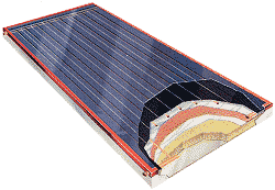 Hierbei wird eine bindemittelfreie und bis 700°C temperaturbeständige, 70mm Silasoldämmmatte eingesetzt. Dadurch kann die Dämmung auch bei höheren Temperaturen, die jede Solaranlage im Stillstand erreicht, nicht ausgasen, und der Wirkungsgrad verringert sich nicht. Die Flachkollektoren sind auch als Großflächenmodule bis zu 19 qm erhältlich.